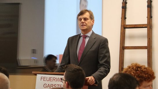 Kommandant Andreas Aschauer konnte bei der 129. Jahresvollversammlung der FF Garsten zahlreiche Ehrengäste begrüßen, darunter Bürgermeister Mag. Anton Silber, Vizebürgermeisterin Mag.a. Katrin Krenn und Vizebürgermeister Michael Steininger, Abschnittsfeuerwehrkommandant BR Thomas Passenbrunner, Bezirksfeuerwehrkommandant Steyr Stadt OBR Gerhard Praxmarer, vom Roten Kreuz Bezirksstellenleiter Stv. Franz Hackl, Pflichtbereichskommdant HBI Mario Haidler und seitens der Exekutive Chefinspektor Johann Ottenberger.