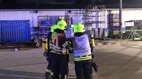 Als Erstmaßnahme erkundete ein Atemschutztrupp die Stoffnummer, die Aussagen über die Gefährlichkeit und den Umgang mit der ausgetretenen Flüssigkeit zulässt. Daraufhin wurde umgehend mit der Personenrettung aus dem Gefahrenbereich begonnen. Aufgrund der Verunreinigung der bewusstlosen Person, war eine Übergabe an den Rettungsdienst erst nach einer sogenannten Not- Dekontamination möglich. Hierzu wurde ein Dekontaminationsbecken aufgebaut.