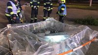 Der inzwischen eingetroffene Schadstoffzug Steyr des Technischen Zuges, setzte in Absprache mit dem örtlichen Einsatzleiter, weitere Maßnahmen. Zwei Trupps statteten sich mit Vollkörperschutzanzügen der Stufe 3 aus und begannen mit der Abdichtung des lecken IBC-Tanks, der erhöht in einem Regal gelagert war. Durch die bereitgestellte LKW-Rettungsplattform konnten sich die Einsatzkräfte Zugang zum Behältnis verschaffen und mit dem Umpumpen der Flüssigkeit beginnen. Um eine weitere Ausbreitung und Verunreinigungen zu vermeiden, wurden parallel dazu alle Kanaleinläufe mittels Dichtkissen verschlossen.