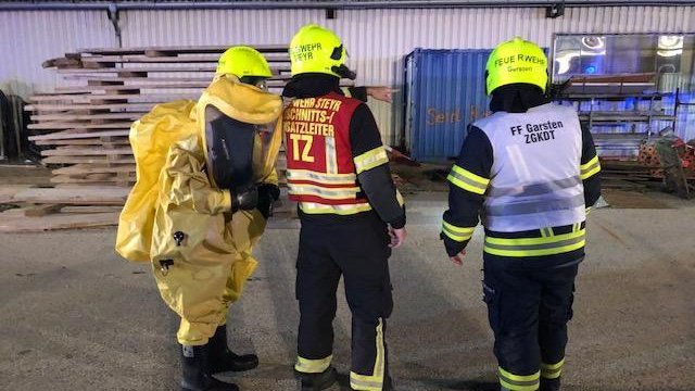 Angenommen wurde ein Schadstoffaustritt am Betriebsgelände des Lagerhauses Garsten durch den ein Passant verletzt worden sei. Im Ernstfall würde hier das GSF-Fahrzeug der FF Pettenbach alarmiert, um die örtlichen Feuerwehren zu unterstützen. Im Übungsszenario wurde die Lage allerdings durch KameradInnen der FF Steyr und Garsten abgearbeitet.
