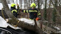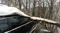 Zunächst wurde der Baum vom Fahrzeug gehoben und das demolierte Auto weggeschleppt. Die Einsatzkräfte entfernten anschließend Äste vom Dach des Hauses und überprüften das Gebäude auf weitere Schäden.