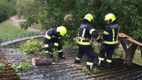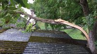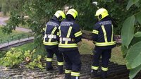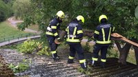 Durch den starken Wind waren Äste auf das nahe gelegene Garagendach gefallen und drohten herabzustürzen. Da das Dach nur schwer zugänglich war, wurde die Feuerwehr zur Beseitigung des Sturmschadens gerufen.