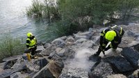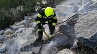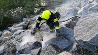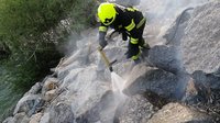 Die Einsatzkräfte konnten das Treibholz und die vertrockneten Äste mit einem HD-Rohr rasch ablöschen. Anschließend wurde das umliegende Gelände mit Wasser benetzt, um ein Wiederaufflammen zu verhindern.