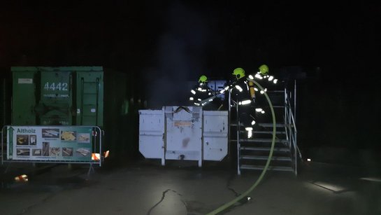 Aufmerksame Anrainer hatten den Brand in einem Container entdeckt und sofort die Einsatzkräfte verständigt. Der Grünschnitt hatte sich selbst entzündet und musste von den Einsatzkräften unter schwerem Atemschutz abgelöscht werden. Dazu wurde der Container mit Wasser geflutet, um ein erneutes Aufflammen zu verhindern.