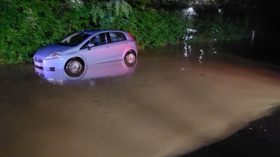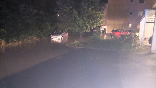 Doch an Schlaf war in dieser Nacht kaum zu denken. Nur wenige Stunden später, um 04:12 Uhr, heulten erneut die Sirenen. Der Garstner Bach war in der Lahrndorferstraße 7A und 9 über die Ufer getreten. Mehrere Fahrzeuge standen in den Wassermassen, auch Keller wurden überflutet. Die Feuerwehrleute informierten die betroffenen Anwohner persönlich über die Hausklingeln und baten darum, ihre Fahrzeuge schnellstmöglich aus dem Gefahrenbereich zu bringen.