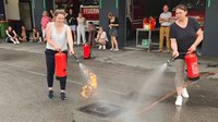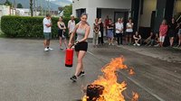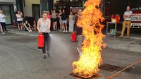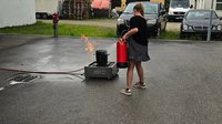 Zuerst wurden die Brandklassen und die Entstehung eines Brandes vermittelt und im Anschluss stand das praktische Training mit den Feuerlöschern am Programm.