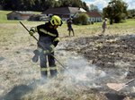 Beim Eintreffen der FF Schwaming hatten aufmerksame Nachbarn bereits erste Löschversuche unternommen und begannen, die Flammen mit Schaufeln einzudämmen. Mit Feuerpatschen gelang es den eingesetzten Kameraden, den Brand innerhalb kürzester Zeit vollständig auszuschlagen.