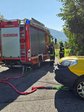 Das Fahrzeug wurde sofort gesichert, um ein Abrutschen zu verhindern, dann die Einsatzstelle abgesichert.