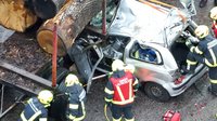 Verkehrsunfall mit Rettung einer Person, Fahrzeug unter LKW Anhänger