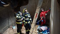 Eine verletzte Person auf dem Hochsilo