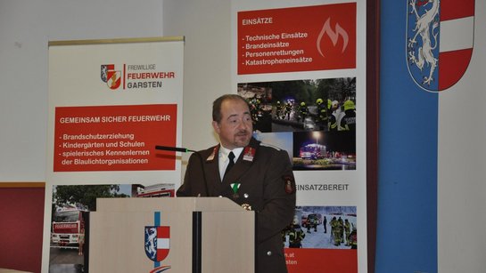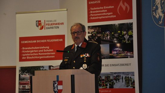 Kommandant Christian Aschauer konnte bei der 126. Jahresvollversammlung der FF Garsten zahlreiche Ehrengäste begrüßen, darunter Bürgermeister Mag. Anton Silber, Vizebürgermeisterin Katrin Krenn und Vizebürgermeister Michael Steininger, Abschnittskommandant Steyr Land Thomas Passenbrunner und von der Exekutive Chefinspektor Johann Ottenberger.