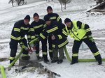 Aufgrund des Wintereinbruchs mussten bei den Feuerwehrfahrzeugen bereits Schneeketten aufgelegt werden, damit der Einsatz sicher abgearbeitet werden konnte.