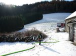 Insgesamt 8 Feuerwehren waren notwendig, um die erforderliche Löschleitung herzustellen. Über zwei Stunden lang wurden 100.000 Liter Wasser von 7 Feuerwehrpumpen in den neuen Löschwasserspeicher gepumpt, welcher ab sofort die erste Löschhilfe für die Objekte in diesem Gebiet dient.