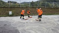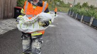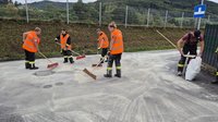 wir durften heute etwas zur Straßensicherheit beitragen und eine Ölspur binden.