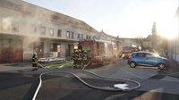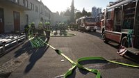 Parallel wurden 3 Personen über die 3-teilige Schiebeleiter gerettet und 2 Zubringerleitungen aufgebaut.