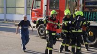 Übungsannahme war ein Brand am Betriebsgelände der Molkerei in Garsten. In einem Gebäude stand das Obergeschoss in Brand und mehrere Personen waren dort eingeschlossen.