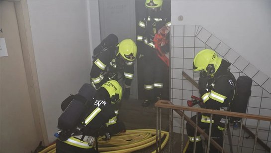 Die 6 Atemschutztrupps rückten zur Personensuche vor, mussten mehrere Türen aufbrechen und retteten 4 Personen aus dem Brandobjekt. Auch ein Atemschutznotfall wurde simuliert. Im Anschluss wurde die Brandbekämpfung und Entrauchung des Objekts durchgeführt.