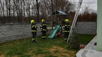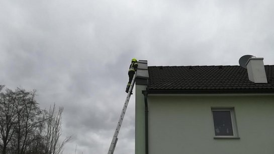 Durch den starken Wind kam es bei einem Blechdach im Buchholz zu Beschädigungen. Um weitere Schäden oder Wassereintritt zu verhindern, wurde das Dach provisorisch von der Feuerwehr fixiert und repariert.