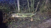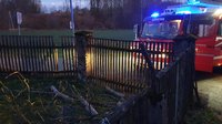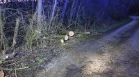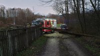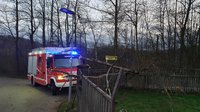 Im Laichbergweg war ein Baum über die Straße und auf einen Gartenzaun gefallen.