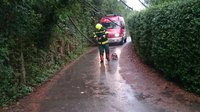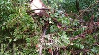 Ein Baum wurde entwurzelt und hing über die Straße , sodass kein Passieren mehr möglich war.
