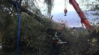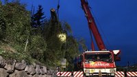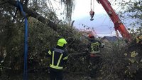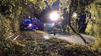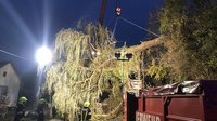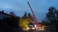Ein besonders zeitintensiver Einsatz hielt die Einsatzkräfte auch am Nachmittag noch auf Trab. Ein umgefallener Baum musste mittels Schwerkran beseitigt werden, da er auf die Straße zu stürzen drohte. Hier zeigte sich einmal mehr die gute Zusammenarbeit der Feuerwehren auch über die Bezirksgrenzen hinweg. Mit Hilfe des Technischen Zuges Steyr konnte der Einsatz erfolgreich und effizient abgearbeitet werden.