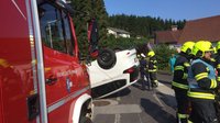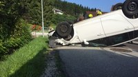 Der von Aschach kommende PKW Lenker war durch die Sonne geblendet und übersah dabei einen Telefonmasten, diesen touchierte er, danach überschlug sich sein Fahrzeug und blieb auf dem Dach liegen. Sofort nach der Alamierung waren die FF Garsten und Aschach/Steyr am Unfallort. Der Verletzte wurde mit der Rettung ins LKH Steyr gebracht.