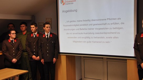 Besonders Erfreulich sei auch, dass wiederum zwei Mädchen und 7 junge Burschen in die Jugendfeuerwehr eingetreten sind und ein Mädchen und acht Burschen angelobt und in den Aktivstand überstellt werden konnte.